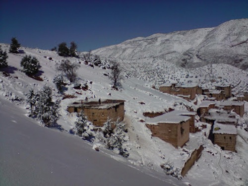 ويعتمد السكان في هذه المناطق الجبلية الوعرة على التزود الأسبوعي من المدن بالحاجيات الضرورية للحياة. و يعيش سكان بعض القرى بجبال الأطلس أوضاعا صعبة للغاية بسبب موجة الصقيع، وتساقط الثلوج مما يزيد من تفاقم عزلة بعض المناطق، فيما تجد بعض الفئات نفسها في شبه عراء تام تحت درجة حرارة تصل إلى ما دون الصفر.