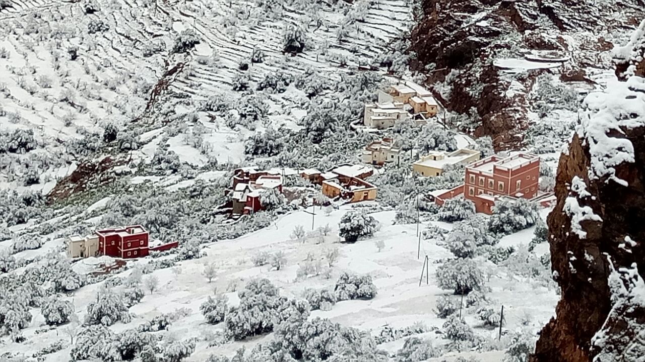 كما أشارت إلى ذلك الأرصاد الجوية بمحطة إنزكَان- أكادير،وحسب شرائط فيدو مصورة تم التقاطها من عين المكان،فقد كست الثلوج البيضاء المرتفعات الجبلية بسوس التي يتجاوز علوها أكثرمن 600 مترعلى سطح البحر،مما جعل كل مناطق سوس تعيش برودة استثنائية تصل أحيانا حسب المحرار المسجل إلى ما بين 4 و7 درجات.