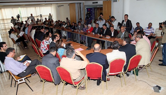 < تفعيل الدستور، بناء على قراءة ديمقراطية و حداثية < تشكيل بديل حقيقي وقوة اقتراحية مبدعة < صيانة وتعزيز المكتسبات التي حققتها المرأة المغربية < مواجهة التطرف الديني والمنهج التكفيري والمذاهب الرجعية < تعزيز التعبئة من أجل صيانة الوحدة الترابية عقدت كل من اللجنة التنفيذية لحزب الاستقلال، والمكتب السياسي للاتحاد الاشتراكي للقوات الشعبية، اجتماعا مشتركا يوم 15 يوليوز 2013. وبعد تدارس الوضعية السياسية الدقيقة التي يجتازها المغرب، ووعيا بالمسؤولية الكبيرة الملقاة على عاتق الحزبين، واستحضارا لمسيرة النضال الوطني الديمقراطي التي جمعتهما لمدة عقود، فإنهما يعلنان ما يلي: |