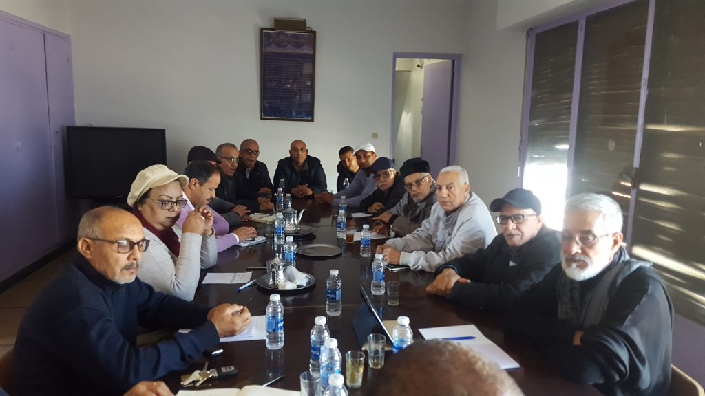تنفيذا لقرارات المجلس الجهوي التنظيمي لجهة سوس ماسة المنعقد بتاريخ 24 نونبر 2019،اجتمع يومه الاحد 29 دجنبر 2019 بمقر الحزب بأكادير الإخوة أعضاء المجلس الوطني للحزب وكتاب الأقاليم و الكاتب الجهوي ، لوضع خارطة طريق تنظيمية وبرنامج عمل يهم مختلف واجهات النضال الحزبي بالجهة التي انطلق تنفيذها فعليا بأقاليم الجهة، وبعد استحضارأعمال الكتابات الإقليمية بالجهة فيما يتعلق بالهيكلة الحزبية والتنظيمية المنجزة، هيكلة الفروع والتهيئ للمجالس الاقليمية والتداول في هيكلة القطاعات الموازية القطاع النسائي والشباب، وبعد التداول في جدول الاعمال المسطر لهذا اللقاء نسجل ما يلي: