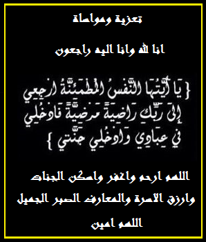 وبهذه المناسبة نتقدم باحر واصدق التعازي لزوجته الفاضلة وللاخ احمد واسماعيل وباقي الاخوة والاخوات والاصهار وكل العائلة الكريمة
