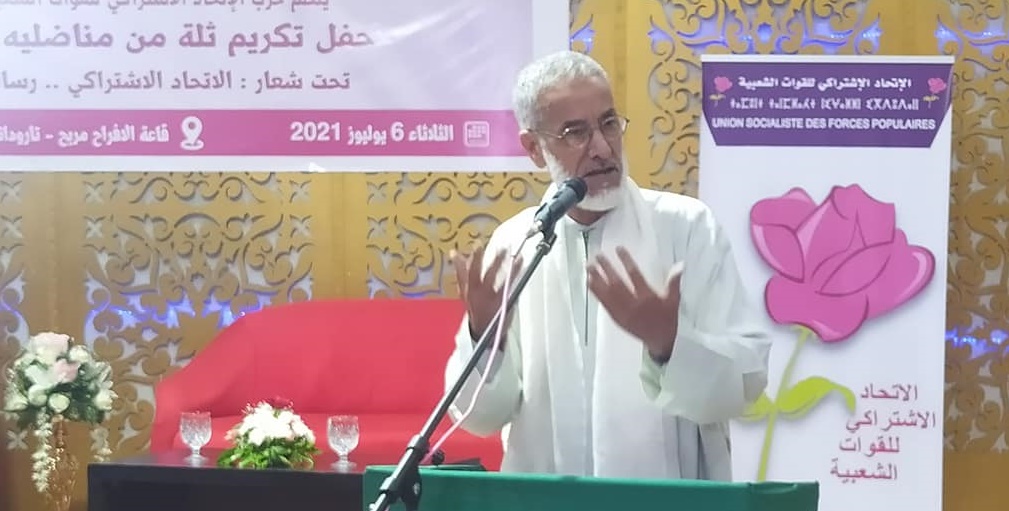 نظم الاتحاد الاشتراكي للقوات الشعبية بتارودانت مساء يوم الثلاثاء 06 يوليوز 2021 حفل تكريم ثلة من مناضليه و مناضلاته تحت شعار:” الاتحاد الاشتراكي …رسالة جيل لجيل “بعد ترديد النشيد الوطني و قراءة آيات بينات من الذكر الحكيم، ألقى الاخ محمد جبري الكاتب الإقليمي للحزب كلمة نورد منها مايلي :