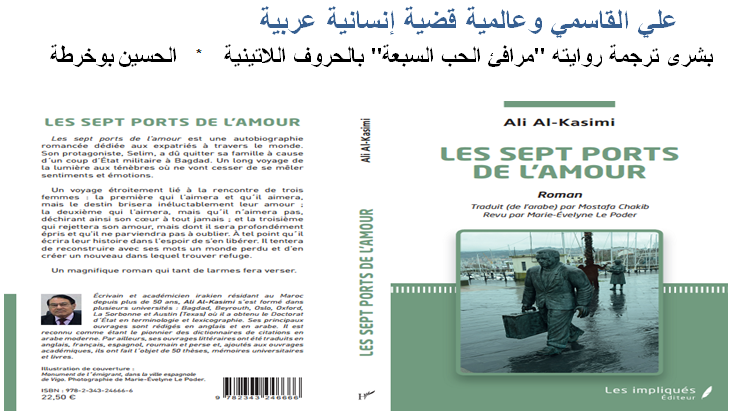 صدرت مؤخرا عن دار النشر لارماتان L’Harmattan – سلسلة Les Impliqués الترجمة الفرنسية لرواية “مرافئ الحب السبعة” من تأليف الكاتب العراقي الدكتور علي القاسمي وترجمة مصطفى شقيب ومراجعة أستاذة الأدب المقارن بجامعة غرناطة الدكتورة ماري ايفلين لوبودير.