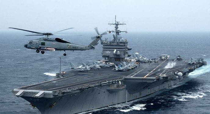 حاملة الطائرات الأمريكية إيزنهاور بالمياه الإقليمية المغربية أثناء مناورات مصافحة البرق