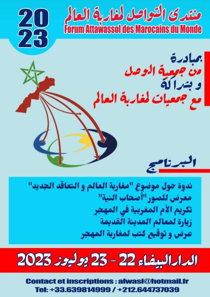 نعم لشعار مرحبا 2023 المبني على تعاقد جديد يساهم المغاربة المقيمون في الخارج في بلورته من اجل وضع اسس العلاقة الهيكلية الدائمة التي أكد عليها الخطاب الملكي ل20 غشت 2022.