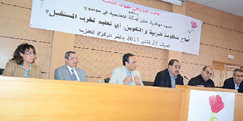 *************** تفاصيل وقائع الندوة الوطنية حول المسألة التعليمية التي نظمها حزب الاتحاد الاشتراكي الرباط: عبد الحق الريحاني قال إدريس لشكر, الكاتب الأول لحزب الاتحاد الاشتراكي للقوات الشعبية، إننا نؤمن صادقين أن المدرسة المغربية هي شأن جميع المغاربة ، وأن الشأن التربوي يخص الأمة المغربية بكل مكوناتها كل من موقعه وحدود مسؤولياته، وان الشعب المغربي يستحق مدرسة أفضل بكثير من هذه المدرسة التي توجد اليوم رهينة بين يدي رئيس الحكومة ووزيره المستعار المكلف بالتدبير المفوض. |