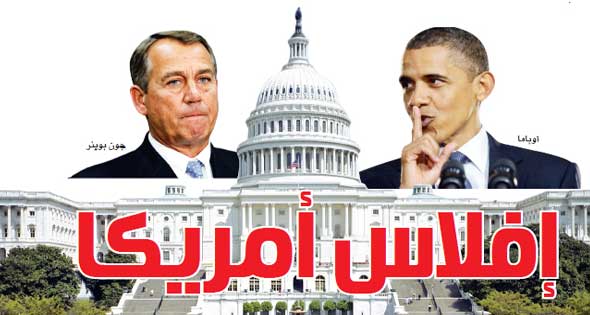 في واحدة من أكثر لحظات التاريخ الأمريكي إظلاما, بدأ العد التنازلي لإشهار إفلاس الولايات المتحدة, أكبر اقتصاد في العالم يوم17 أكتوبر الحالي. ومازال الأمريكيون يحبسون أنفاسهم في انتظار لحظة الحسم الأخيرة بين الخصمين السياسيين اللدودين: الجمهوريين والديمقراطيين اللذين دخلا ساحة حرب سياسية, حيث يحاول كل طرف تركيع الأخر وإجباره علي تقديم التنازلات أولا.